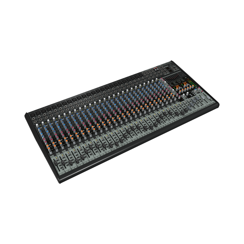 Сверхнизкошумящий аналоговый микшер премиум-класса с большим динамическим диапазоном (24 моновхода, 2 основных и 2 дополнительных стереовхода, 4 AUX-шины, 4 подгруппы, 2 процессора эффектов, выходной эквалайзер, встроенный импульсный блок питания). - 24 современных высококлассных микрофонных предусилителя XENIX - Неоклассические "британские" 3-полосные эквалайзеры с полу-параметрической серединой - 4 выходных шины и дополнительный моновыход с обрезным ВЧ-фильтром для подключения субвуфера - 2 новых независимых 24-битных мультиэффектпроцессора студийного класса с 99 пресетными программами в каждом 9-полосный системный графический стереоэквалайзер для точной частотной коррекции основного или мониторного микса - Система быстрого детектирования обратной связи FBQ - Пиковые индикаторы, переключатели Mute и Main mix, кнопки отправки сигнала на подгруппы и переключатели Solo и PFL на каждом входном канале - Переключатель Standby, мутирующий все входные каналы, за исключением входов CD/Tape