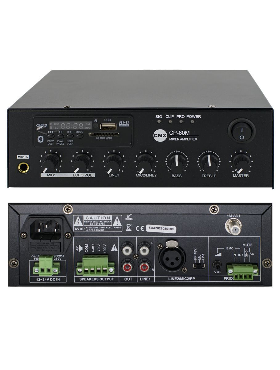 CMX Audio CP-60M представляет собой компактный и легкий в использовании микшер усилитель мощностью 60 Вт.