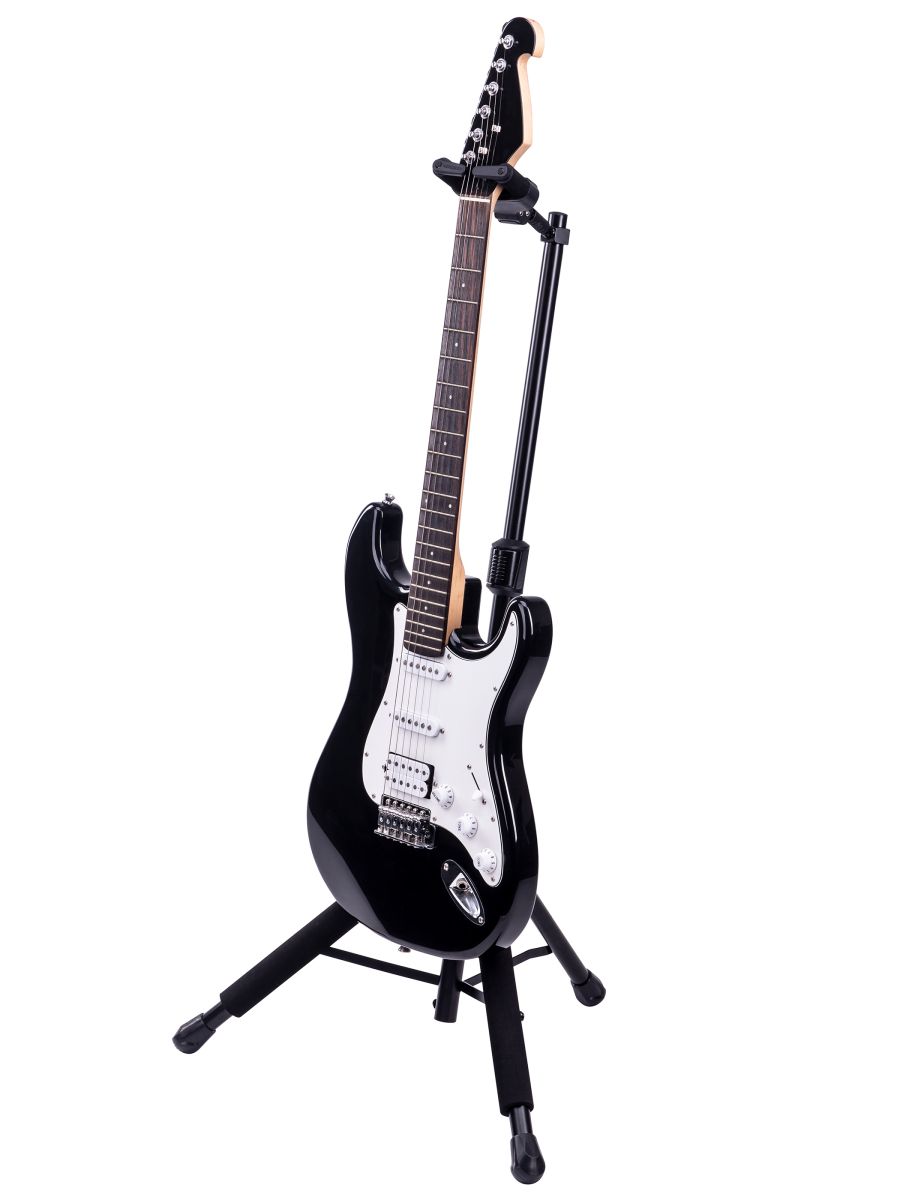 Hercules GS415B Plus – это высококачественная гитарная стойка. Модернизированная модель Hercules GS415B Plus имеет встроенную автоматическую систему сжатия, которая надежно фиксирует гитару. Механизм AGS срабатывает под весом инструмента. Ручное регулирование позволяет установить высоту стойки быстро, легко и безопасно. SFF материал защищает инструмент от повреждений во всех контактных точках. Hercules GS415B Plus — это надежное и удобное решение для хранения и демонстрации вашего инструмента. Благодаря инновационной системе автозахвата и продуманной конструкции, стойка обеспечивает максимальную безопасность и комфорт использования.