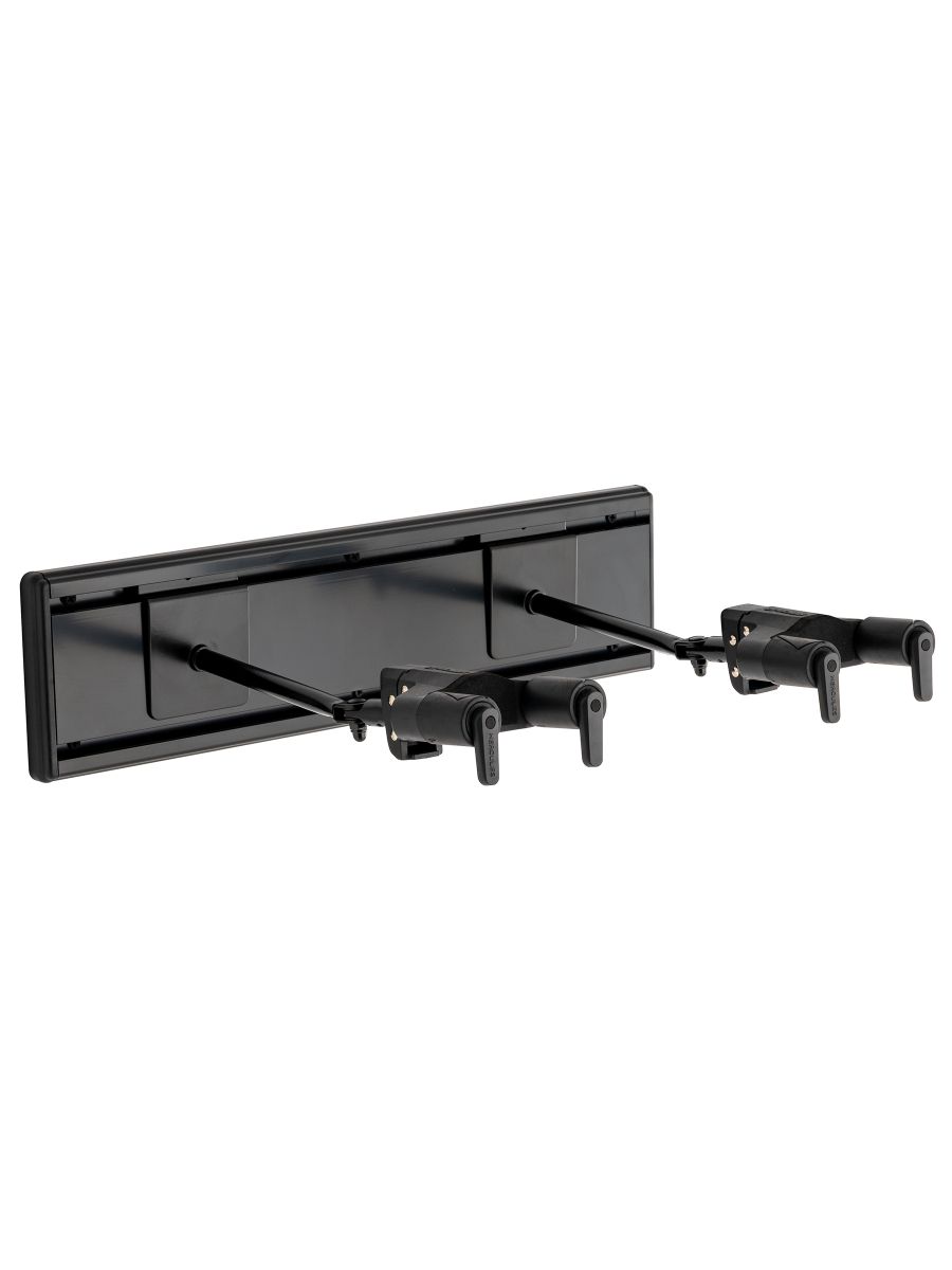 Hercules GSP402SB - настенная панель с крючками для двух гитар разработана для музыкантов, которым требуется надежное и удобное решение для хранения гитар. GSP402SB оснащена двумя поворотными крючками AGS Yoke с автоповоротом, которые надежно фиксируют инструменты. Крючки регулируются по углу наклона и подходят для грифа шириной 40–52 мм. Конструкция панели позволяет расширять систему хранения, а регулируемое расстояние между крючками делает её подходящей для инструментов разных размеров, обеспечивая оптимальную защиту и демонстрацию ваших гитар. В комплект входят настенная панель и два настенных крючка GSP40SB Plus с длинными ручками и адаптерами N.I.N.A. Пользователи могут легко добавлять новые наборы по мере роста своей коллекции гитар, комбинируя их с другими.