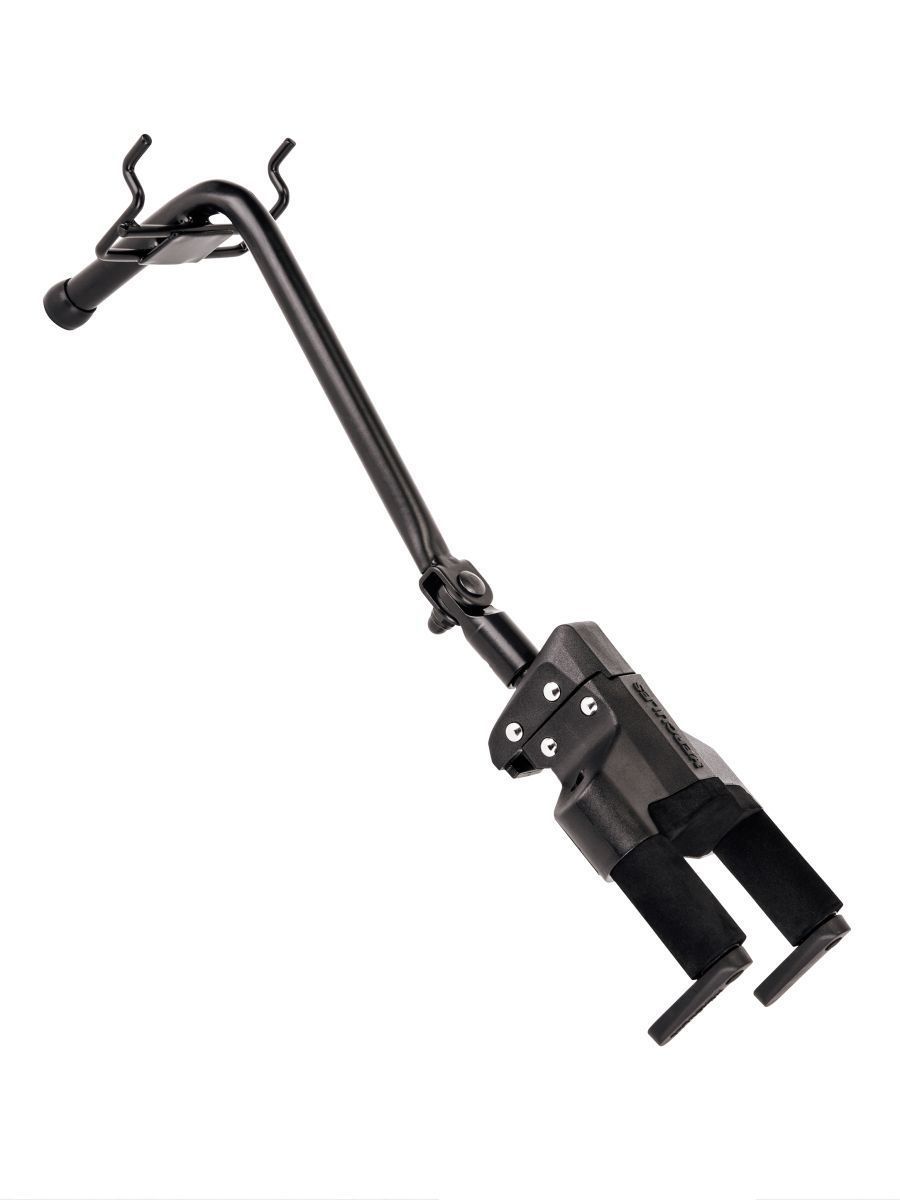 Крючок для гитары настенный с автозахватом. Система автозахвата Auto Grip System состоит из механизма, реагирующего на вес гитары и двух рукояток. Вставьте гриф Вашей гитары в кронштейн. Функция AGS сработает автоматически. AGS реагирует на вес гитары, кнопка нажимается и вращает обе рукоятки. Имеет прочную металлическую конструкцию с SFF (поролон) покрытием контактных частей для предотвращения повреждения корпуса гитары. Может вращаться влево и вправо по фронту. Вся конструкция легко и надёжно крепится на панели-сетке.