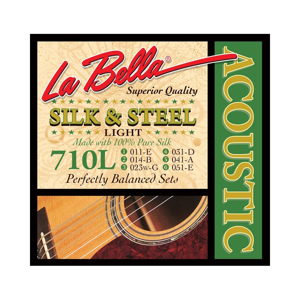 La Bella 710L Струны для акустической гитары "Silk & Steel" Light, стальные, 3,4,5,6 - обмотка из шелковой нити и посеребренной меди