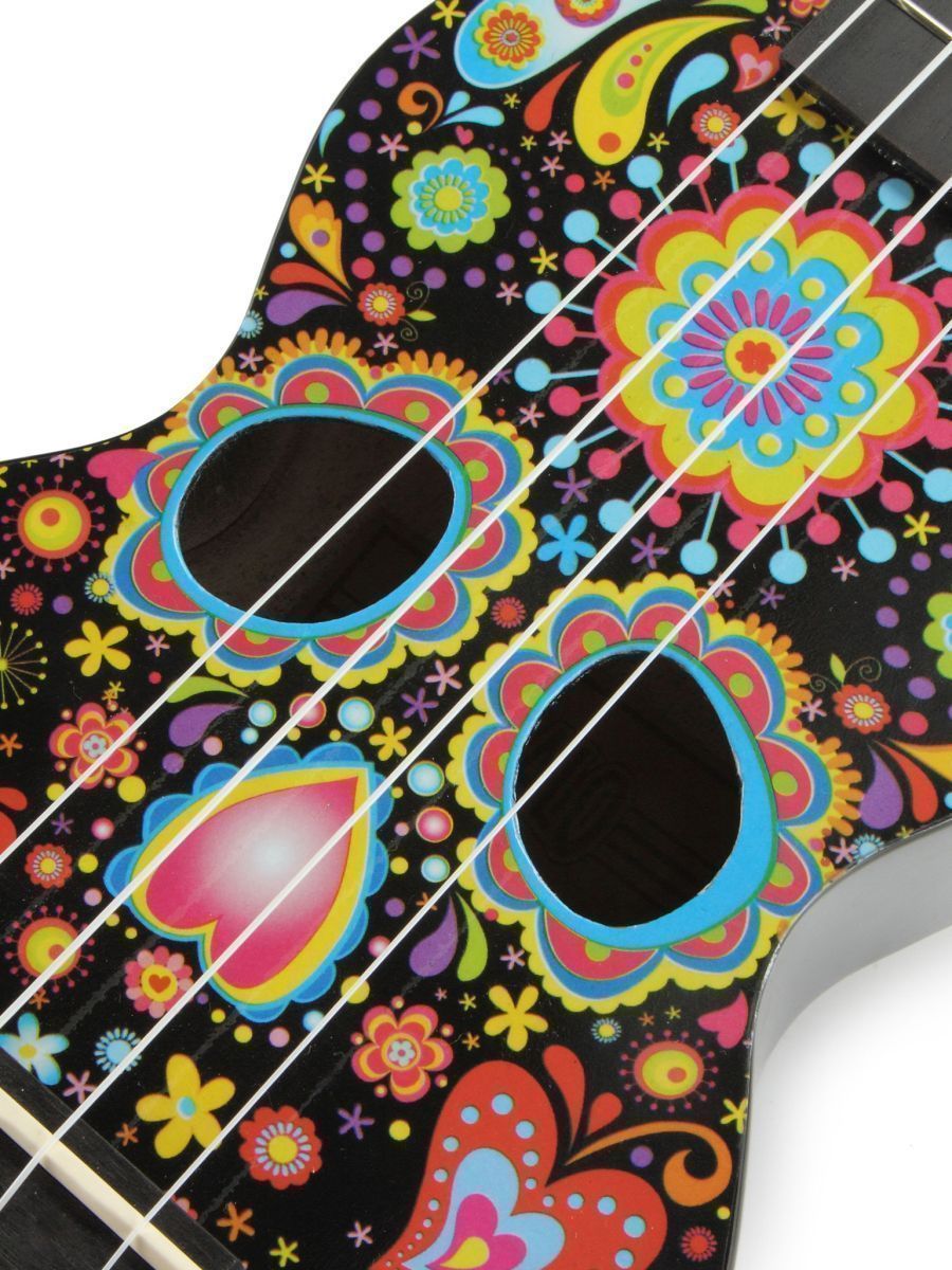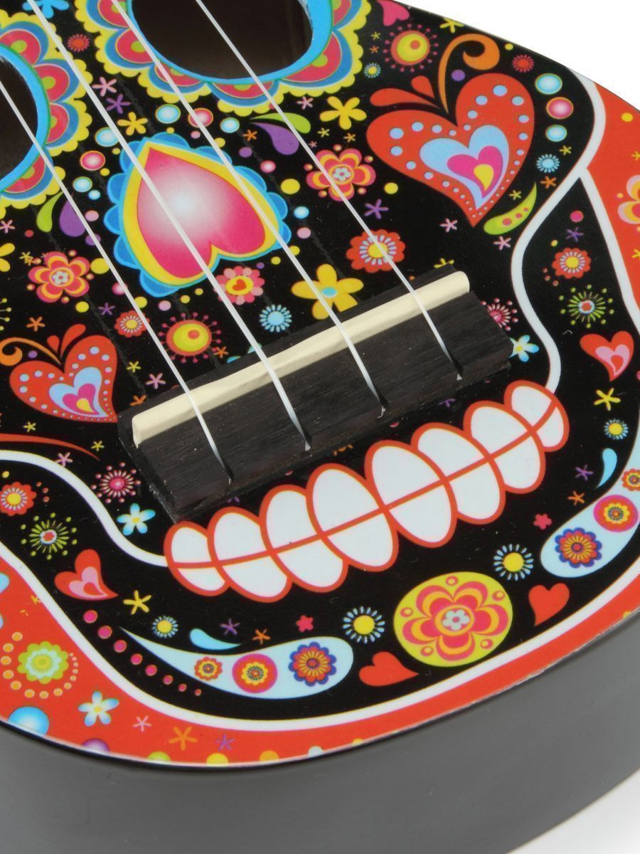 Серия: Art Тип: сопрано Количество струн: 4 Верхняя дека: липа Нижняя дека и обечайка: липа Гриф: габон Накладка на гриф: махагони Бридж: махагони Лады: 12, никель Струны: Aquila Super Nylgut Цвет корпуса: цвет черный, рисунок – череп Покрытие: лак В комплекте: чехол