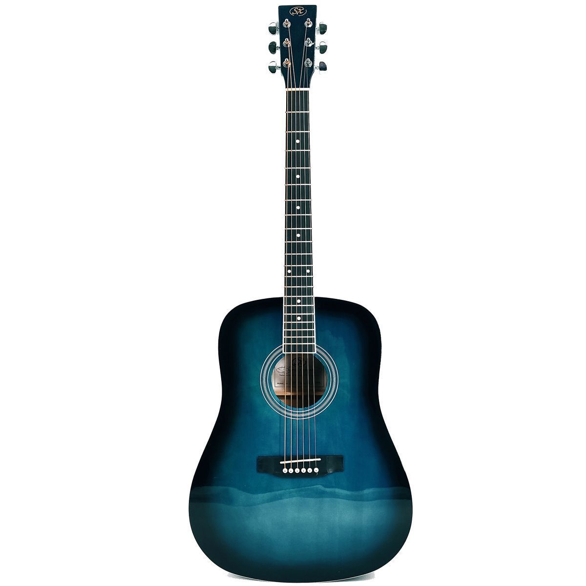 SX SD104GBUS Гитара акустическая, корпус: липа, гриф: окуме, накладка грифа и нижний порожек: палисандр, колки: хромированное покрытие, цвет Blue sunburst глянцевый