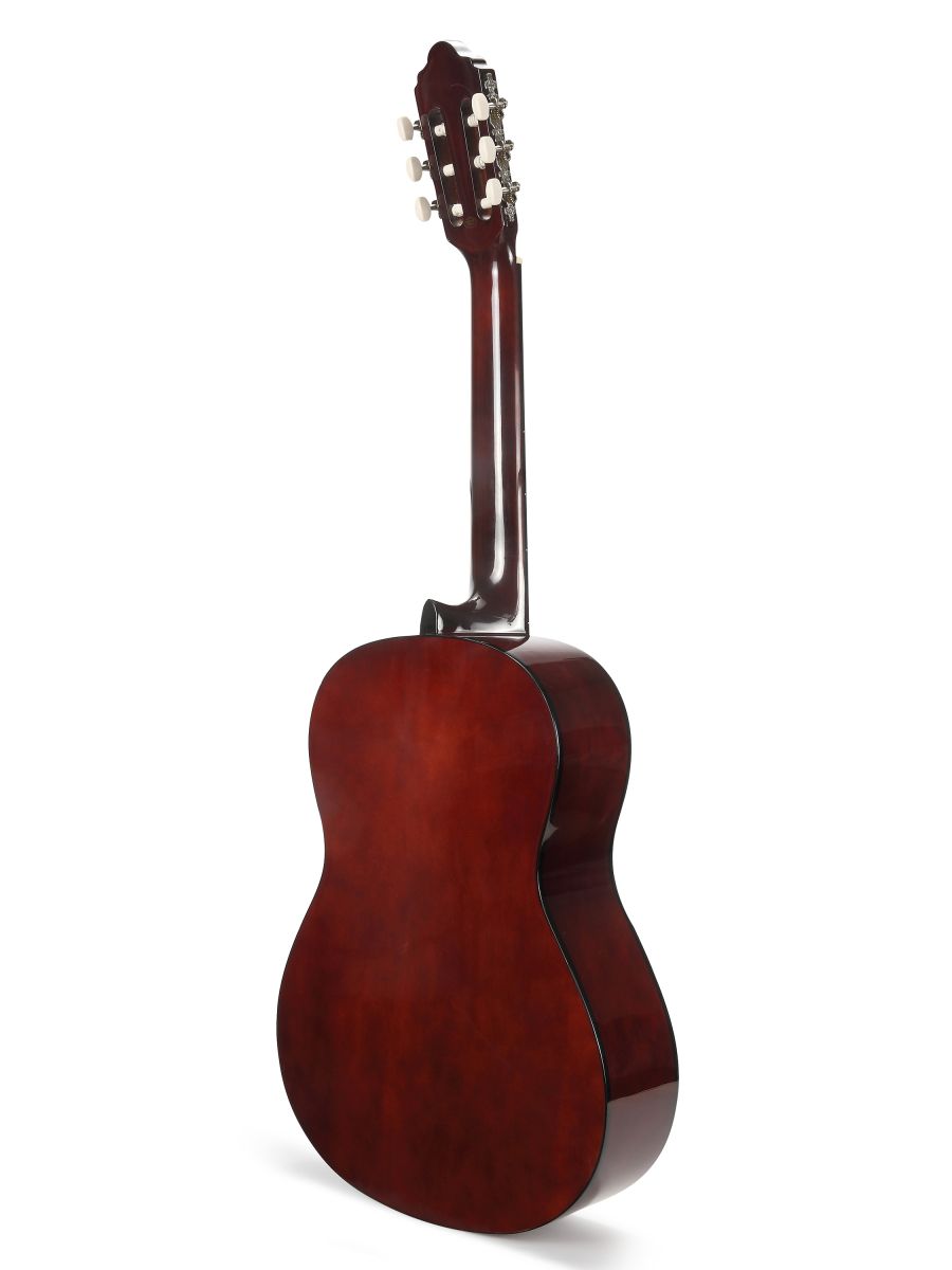 Valencia VC104 – это полноразмерная классическая гитара отличного качества. Инструмент подходит как для обучения в музыкальной школе, так и для домашних занятий. Valencia VC104 обладает насыщенным звучанием и имеет широкие тональные возможности. Корпус гитары изготовлен из липы, что положительно влияет на резонансные особенности инструмента. Гриф из нато имеет удобную форму и оптимальную ширину. Нейлоновые струны, установленные на комфортной для игры высоте, делают гитару удобной даже для самых юных исполнителей. Надежная колковая механика обеспечивает мягкость хода и прекрасно держит строй. Классическая гитара Valencia VC104 сочетает в себе прекрасный дизайн, доступную стоимость и превосходные звуковые характеристики.